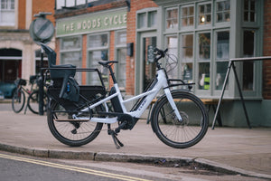 Our Cube Longtail Sport electric cargo bike features a huge battery capicty, and an equally huge carrying capacity! Load up with two kids, or two kids' worth of luggage, and head out on an adventure. (Child seat not included but can be added)