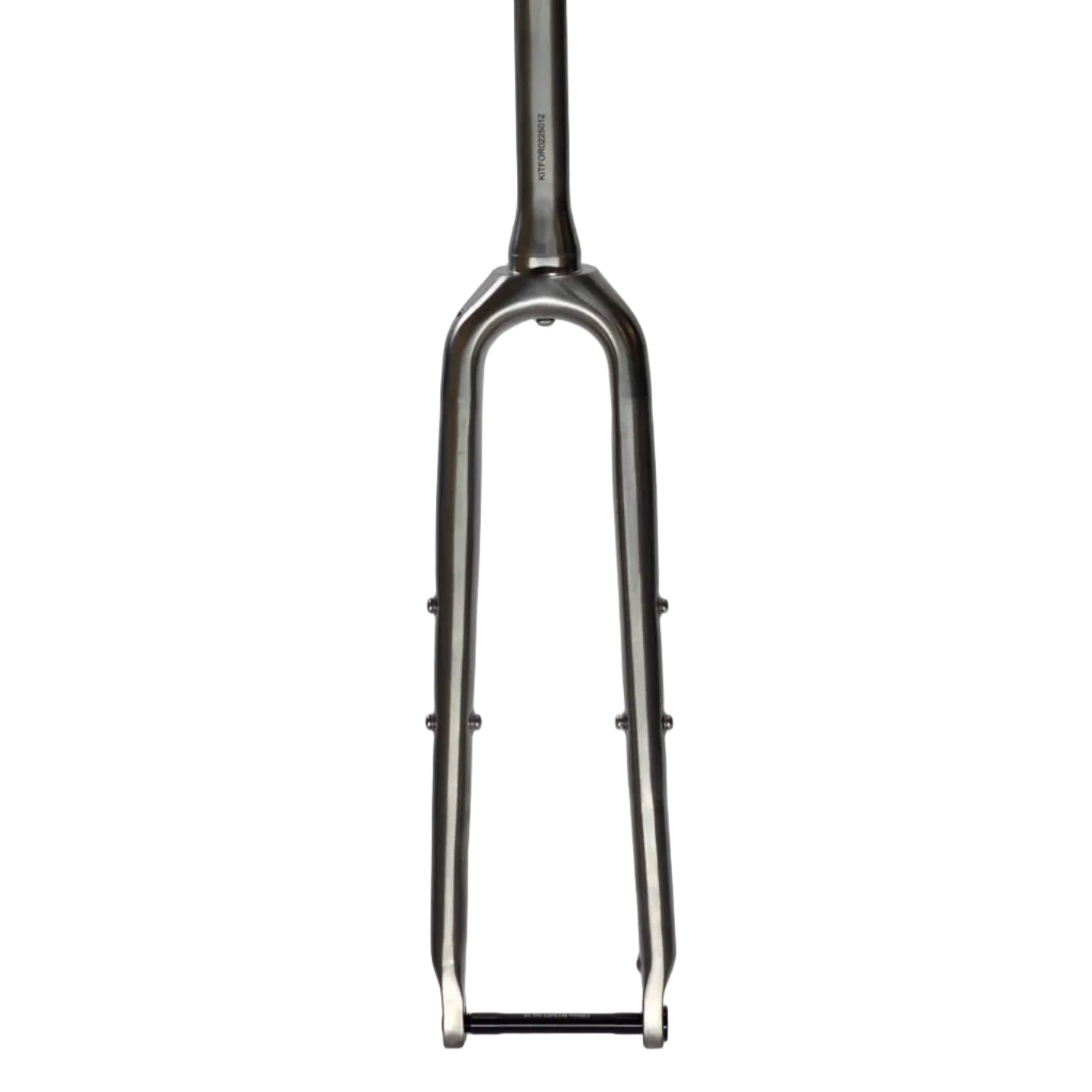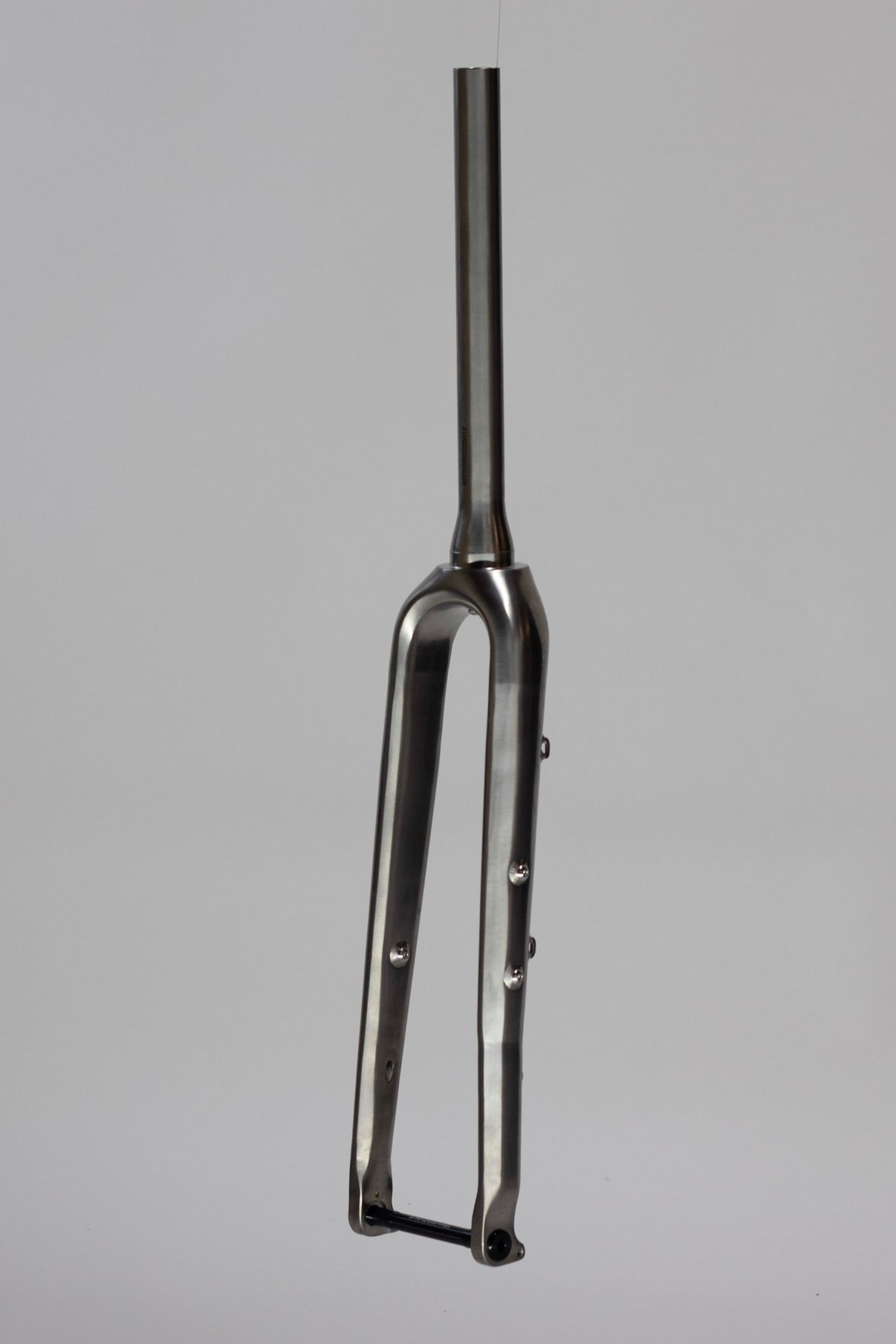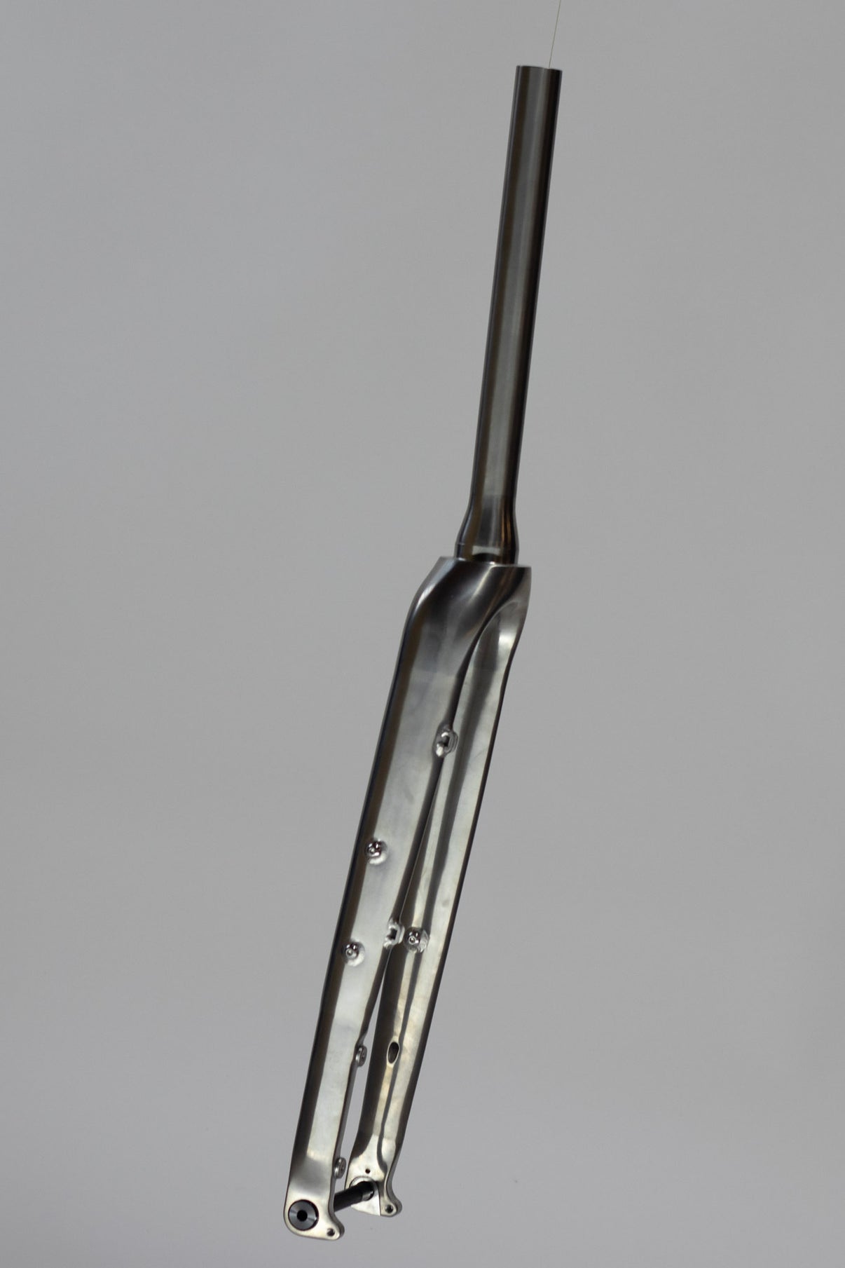Blending the most current titanium construction methods with elegant practicality, the Kite gravel fork is unique. With large tyre clearance, a beautiful ride quality and light weight it's a great addition to any gravel bike.